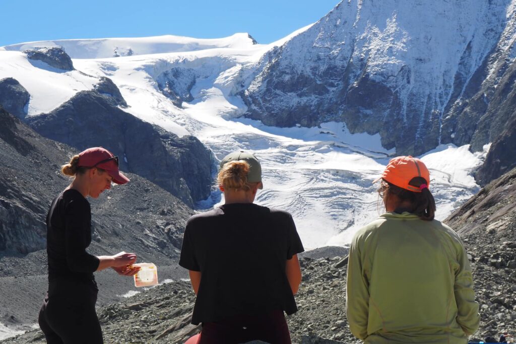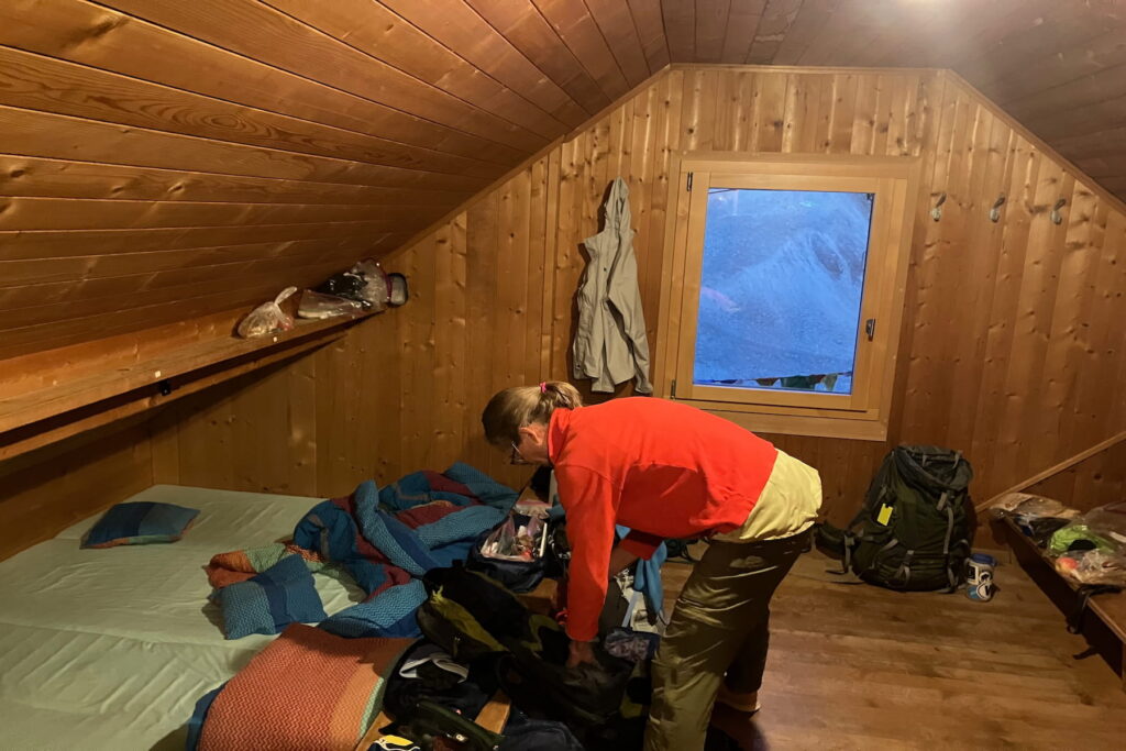 Breakfast was coffee and Bircher muesli. We donned our packs and took the daily hitting-the-trail selfie. We stopped for snacks as the scenery including milky, glacier-fed lakes unfolded around us. Upon reaching our destination, we showered, tucked into a three-course dinner served family-style, and climbed into bed. Sometimes my husband and I shared a cozy room at an inn pulling the duvet up to our chins. Other nights at rustic huts, we climbed into our sleep sacks, side-by-side with other hikers. This new routine was a refreshing break from “real” life.