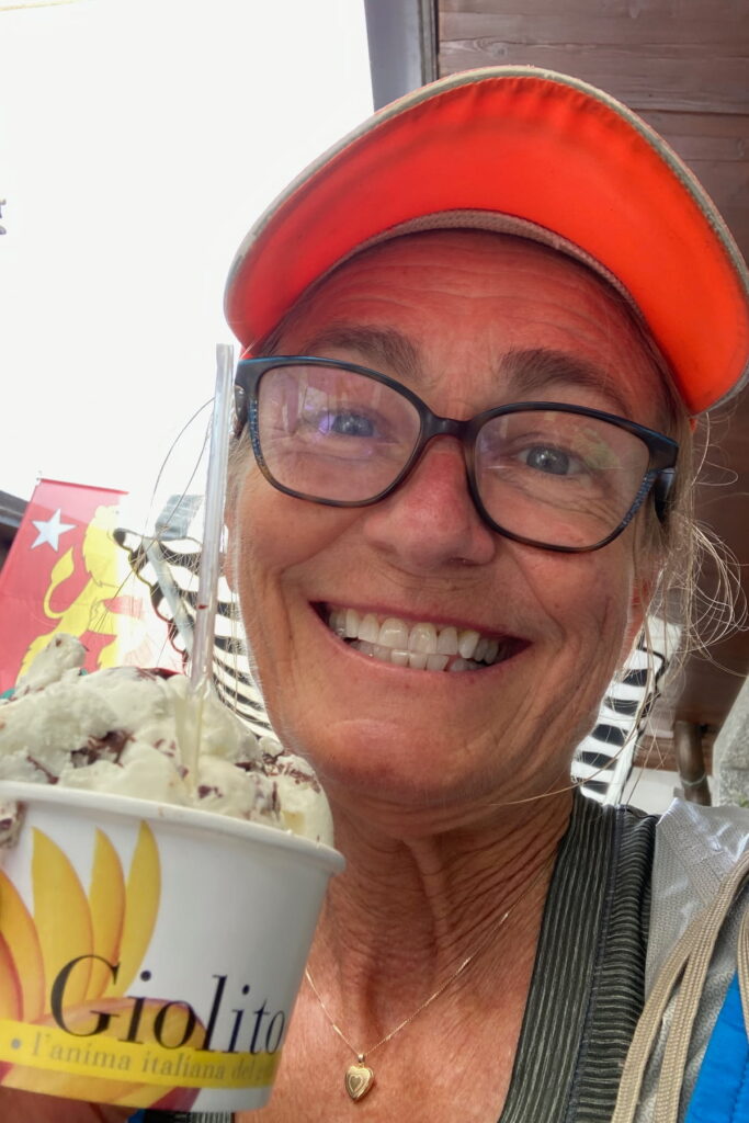 An ice cream shop caught my eye. I celebrated with a scoop of gelato. I soaked in the welcome relief that the hike was done and sighed contentedly.