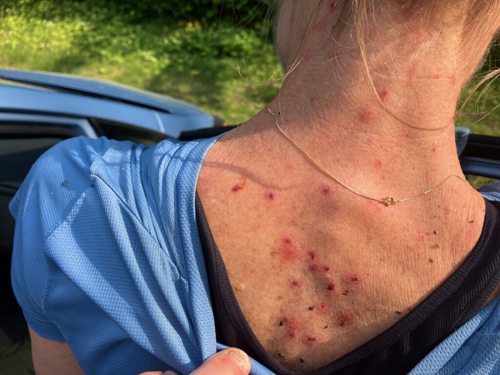 I scrutinized the pile spread out on my bed. What could I eliminate? Rain and cold weather gear were a must. I selected a layered outfit for hiking that I would handwash. A set of evening clothes. Safety gear (water filter, compass, and matches) was bundled in a ziplock bag. A lightweight towel, sleep sack, and toiletries. My pack weighed 22 pounds. I’d be adding water, snacks, and lunch when we hit the trail.